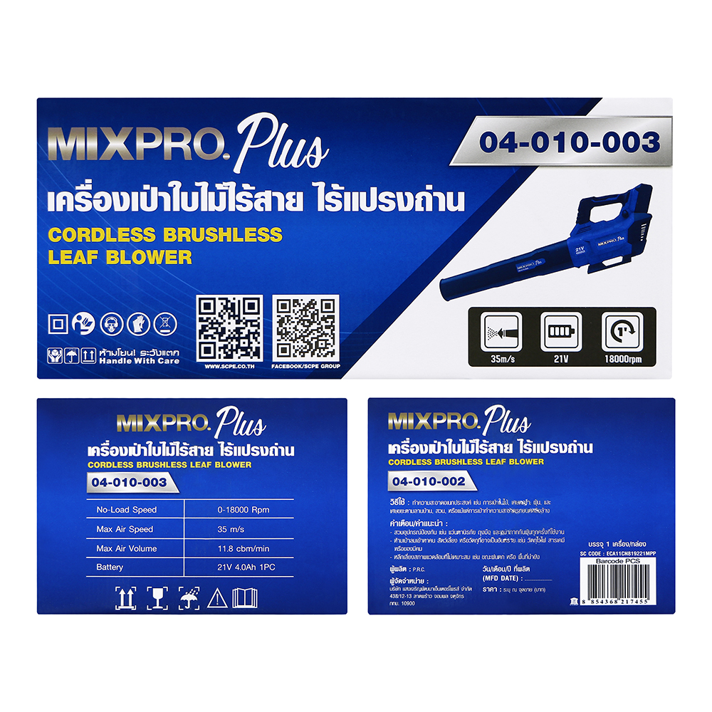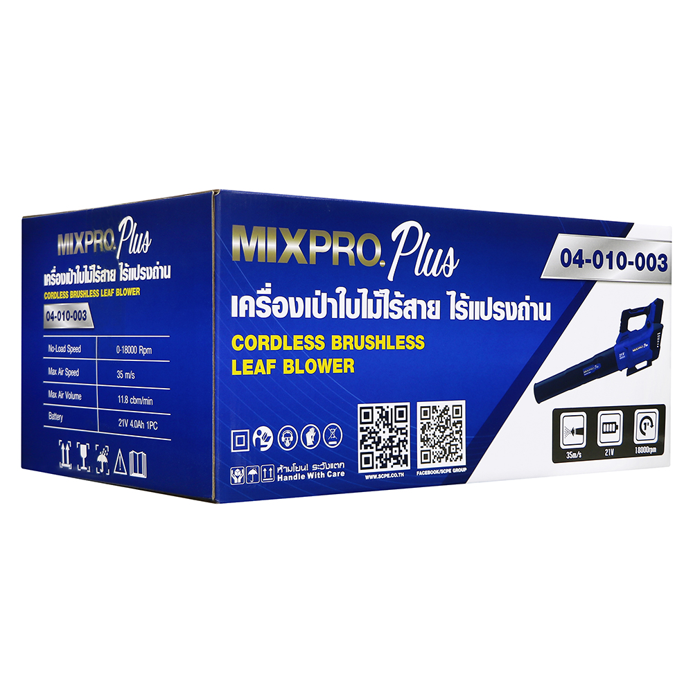 เครื่องเป่าใบไม้ไร้สายแบบไร้แปรงถ่าน MIXPRO PLUS ออกแบบมาเพื่อการทำงานที่ทรงพลังและมีประสิทธิภาพสูง ด้วยมอเตอร์แบบไร้แปรงถ่านช่วยลดการสึกหรอ เพิ่มอายุการใช้งาน และให้แรงลมสม่ำเสมอ เหมาะสำหรับเป่าใบไม้ เศษฝุ่น และสิ่งสกปรกในพื้นที่ต่าง ๆ เช่น สวน สนามหญ้า หรือบริเวณรอบบ้าน สามารถปรับความเร็วได้ 3 ระดับ เพื่อให้เหมาะสมกับลักษณะงาน ช่วยให้ทำงานได้รวดเร็วและสะดวกยิ่งขึ้น เหมาะสำหรับทั้งผู้ใช้งานทั่วไปและงานดูแลสวนอย่างมืออาชีพ